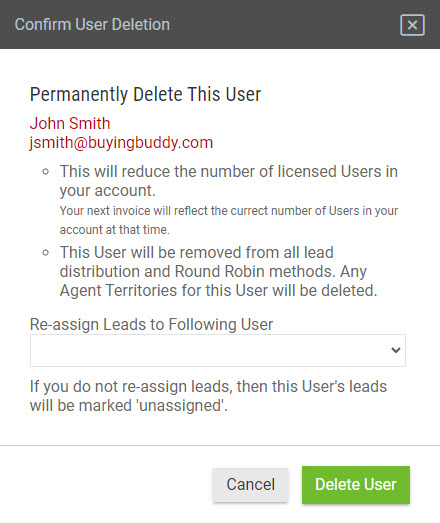 - Any leads will assigned to the User will be re-assigned to a different User that you choose