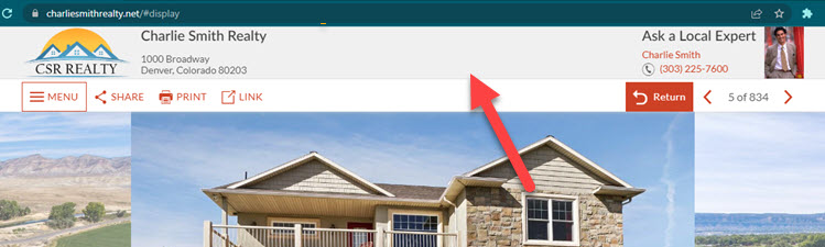 An optional setting in the “Property Details View Methods” option in Website Settings (panel 5), will show a branded header across the top of the details in the overlay view, as shown below.